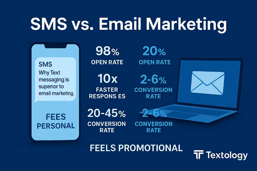 If you’re still relying on email as your main communication channel, this comparison will show you exactly why SMS is quickly becoming the preferred choice for modern businesses — and why platforms like Textology make switching effortless.